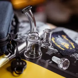 Deluxe Glass Kit – Include: mini-bong, flower bowl and a dab banger into a smell proof and lockable pouch