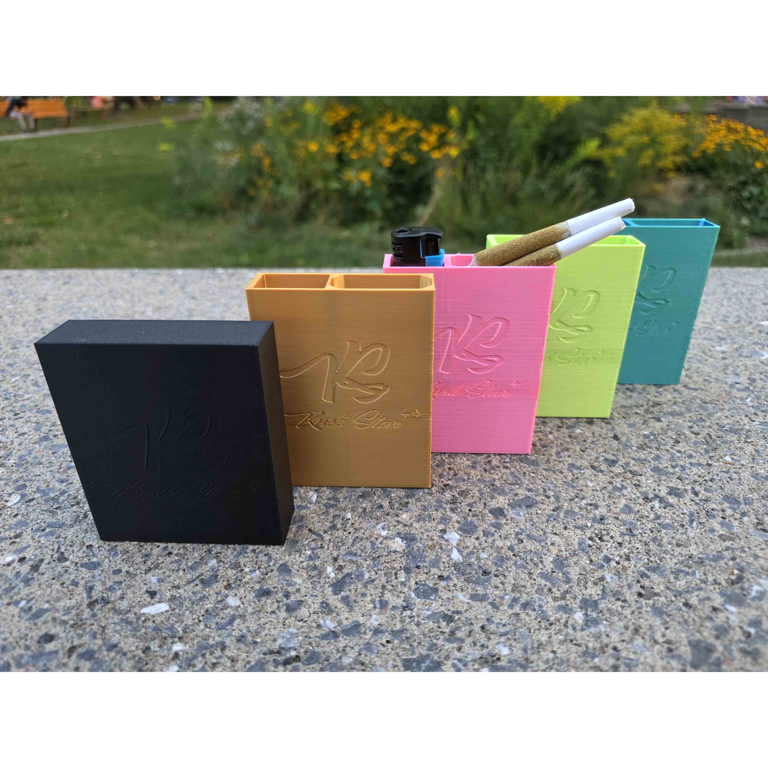 This case’s design to fit up to 7 King Size joints and your CLIPPER lighter in their respective compartiments . This go-to smell proof, slim and durable case will make your short travels easier. Now you can carry your pre-rolled doobies out on the easiest way possible. This case is made out of 3D printed material, with a hard bottom part and a top flexible part. This way the top part slide tight and seal the case’s bottom part. It is durable, resistant and safe to use with comestible products. This joint slide comes in limited quantities, pre-rolls and lighter are not provided.