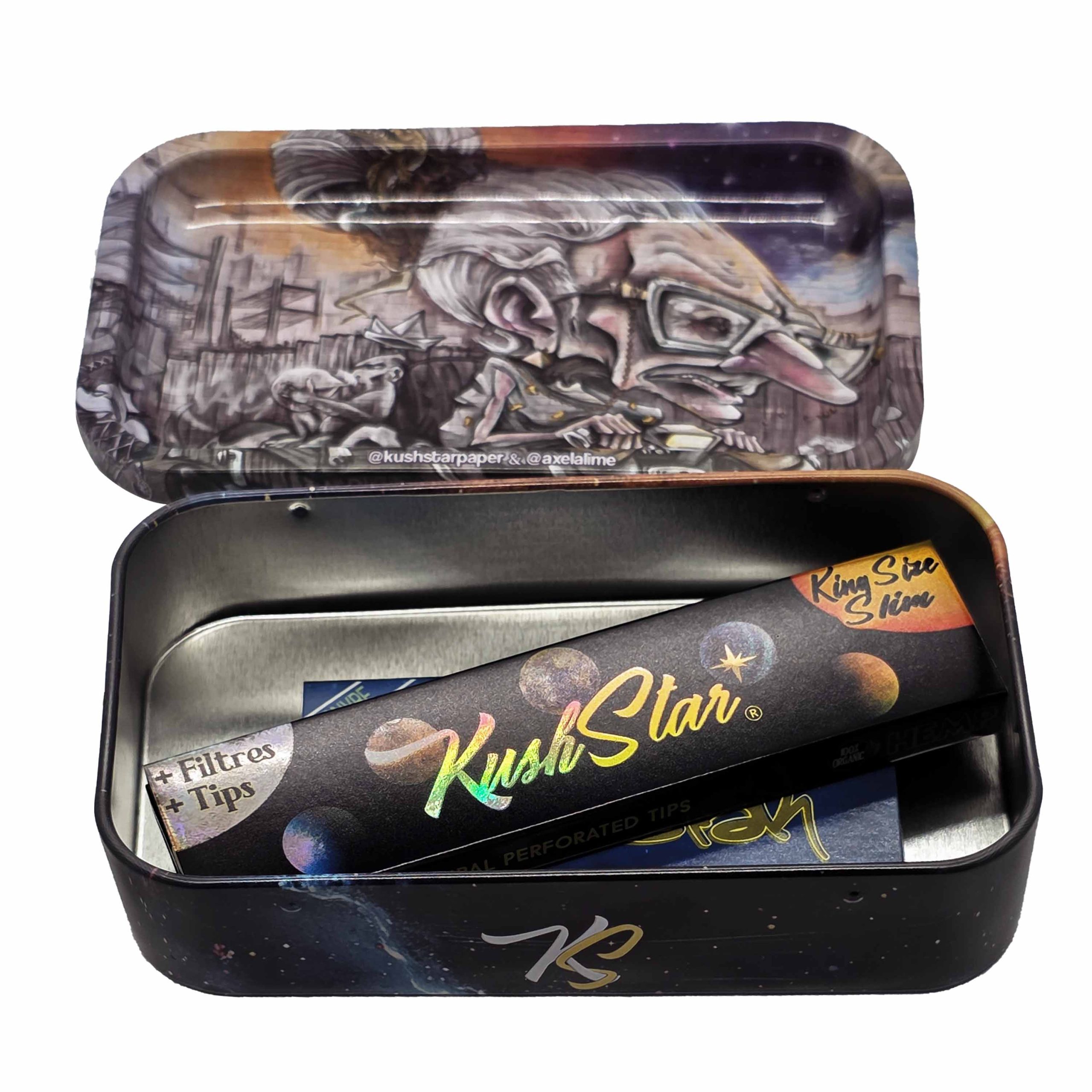 Store, carry, and roll in style with the KushStar® Mini Metal Case, a compact all-in-one solution designed for rolling papers, small tools, and flowers. Whether you’re on-the-go or at home, this case does it all.